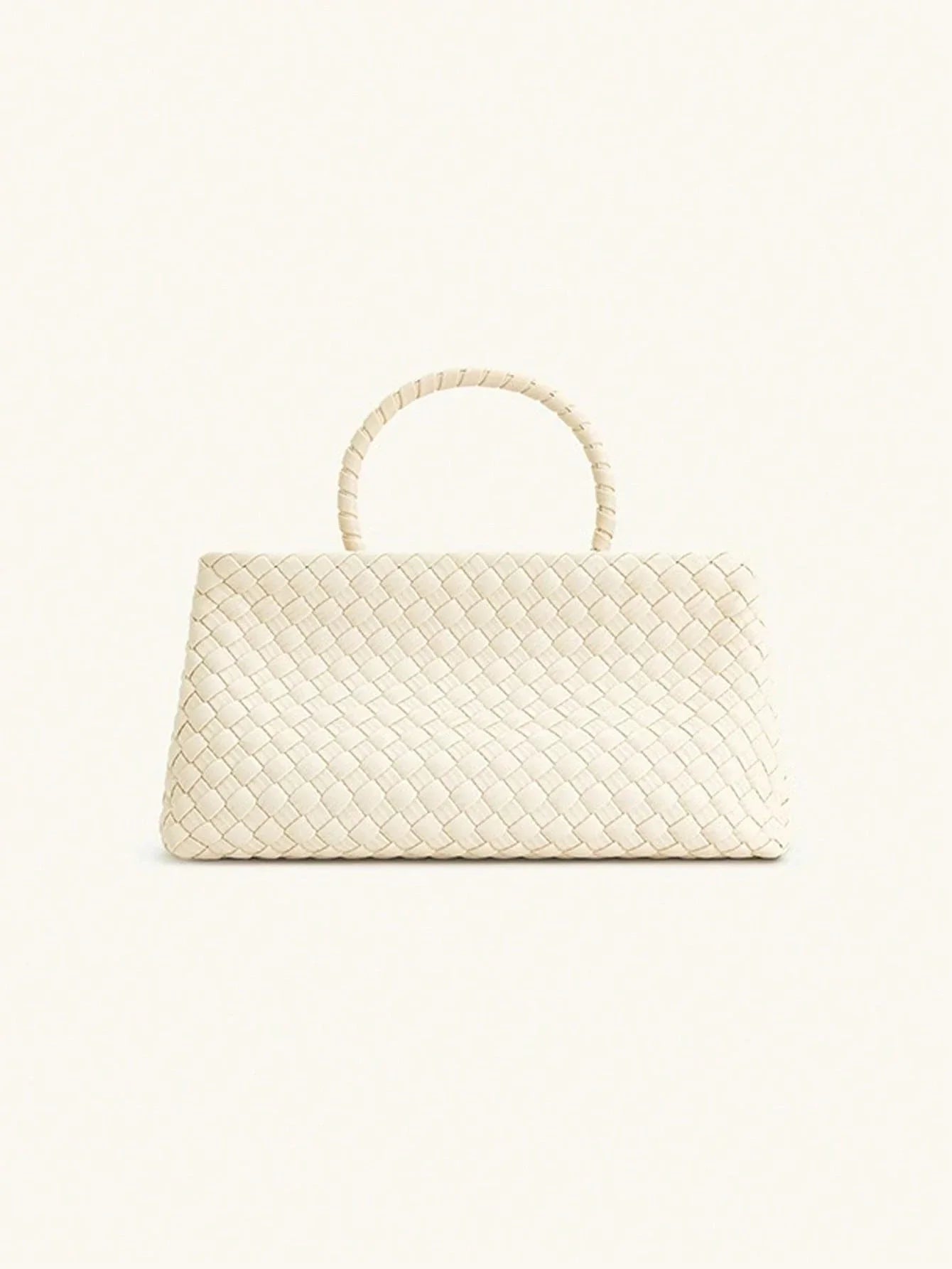 Style: Woven handbag, minimalist tote, fashion-forward